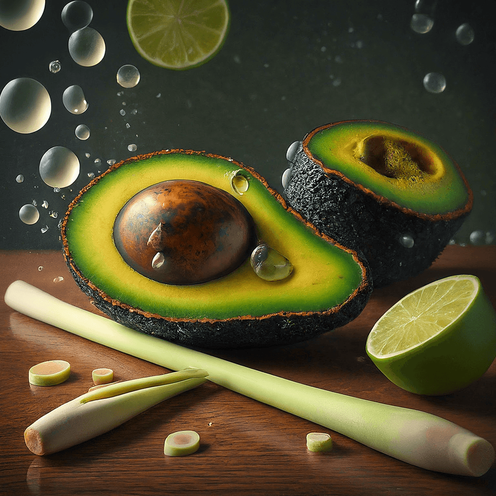 Our Avobath wax melt rejuvenates your senses with its sweet and herbal fusion, featuring the richness of avocado paired with the zesty brightness of bergamot and lemon. This invigorating fragrance melds crisp citrus notes with the refreshing essence of lemongrass and the delicate floral undertones of violet. A delightful hint of sugar in the base adds a sweet, comforting finish, creating a well-rounded aroma that uplifts and revitalizes, perfect for starting your day on a high note or unwinding in the evening.
